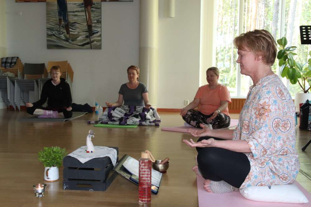 Luonto viheriöi ja linnut laulavat, kun kymmenkunta naista saapuu toukokuisena torstaina Lehtoniemen leirikeskukseen mukanaan makuualusta ja juomapullo. Tämä on ilta, jota he ovat odottaneet. Edessä on Hiljaisuuden jooga ja puolitoista tuntia aikaa pysähtyä hetkeen. Samaan aikaan yksin ja yhdessä muiden kanssa. Kännykkäkin on hiljaisessa tilassa.