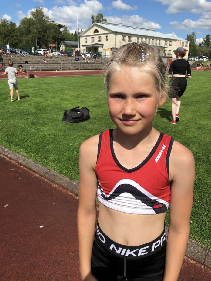 T11 Vanessa Salonen 5) kuula 7,69 PB, 6) seiväs 160, 8) kiekko 16,71 PB, 9) pituus 372 PB
