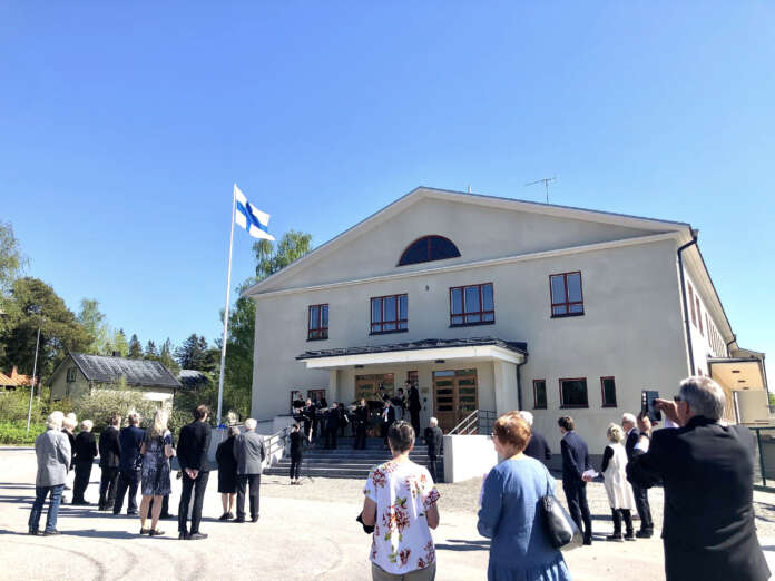 Juhla alkoi Laitilan Soittokunnan säestyksellä Urheilutalon pääovelta, joka on nyt siirretty alkuperäiselle paikalleen.