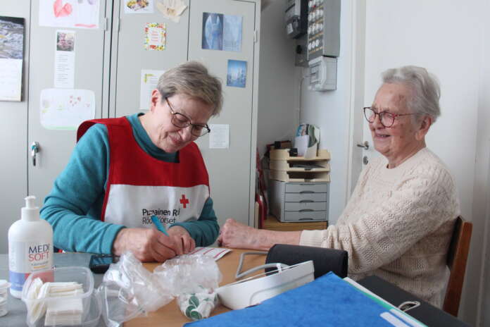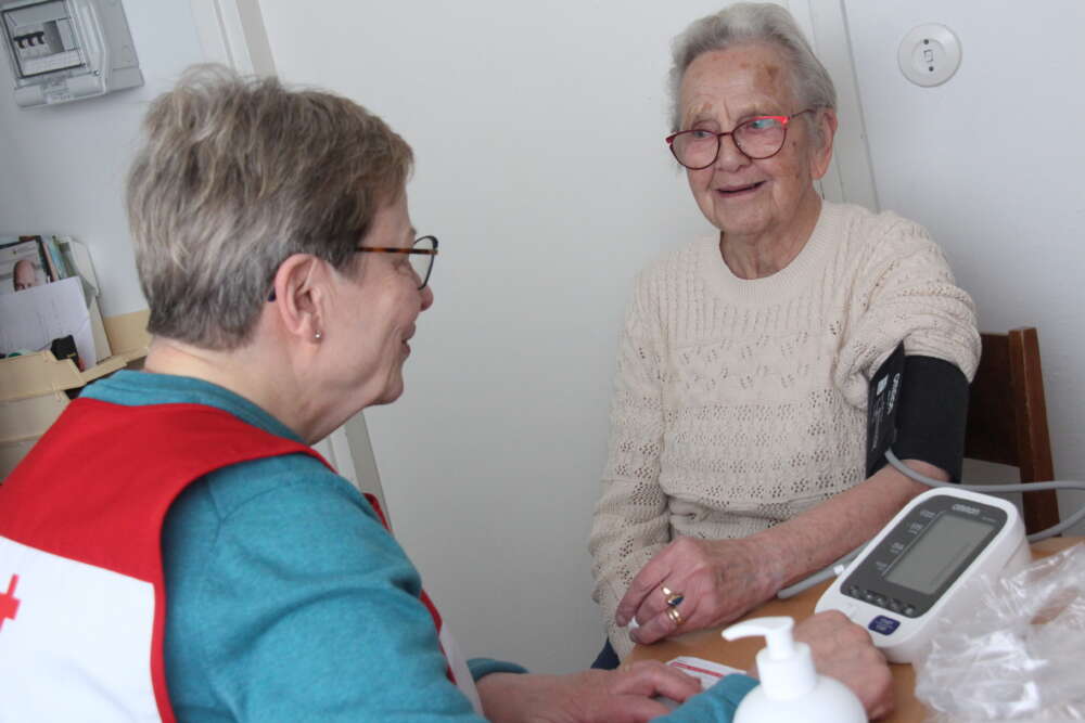 Suomen Punaisella Ristin Varsinais-Suomen piirin asiantuntija Elina Jalonen oli vierailemassa Rohdaisten terveyspisteellä viime viikolla. Vapaaehtoisvoimin toimivat terveyspisteet eivät korvaa hyvinvointialueen järjestämiä terveyspalvelua, mutta ne tarjoavat matalan kynnyksen mahdollisuuden seurata verenpainetta ja sokeriarvoja.